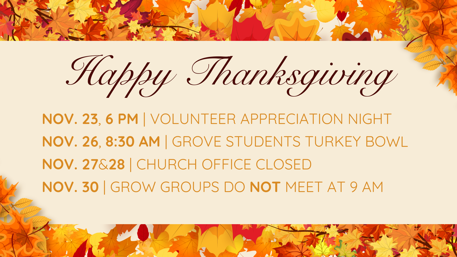 As Thanksgiving approaches, our staff is especially grateful for you! We pray your holiday is filled with God's blessings and reminders of His abudant grace.