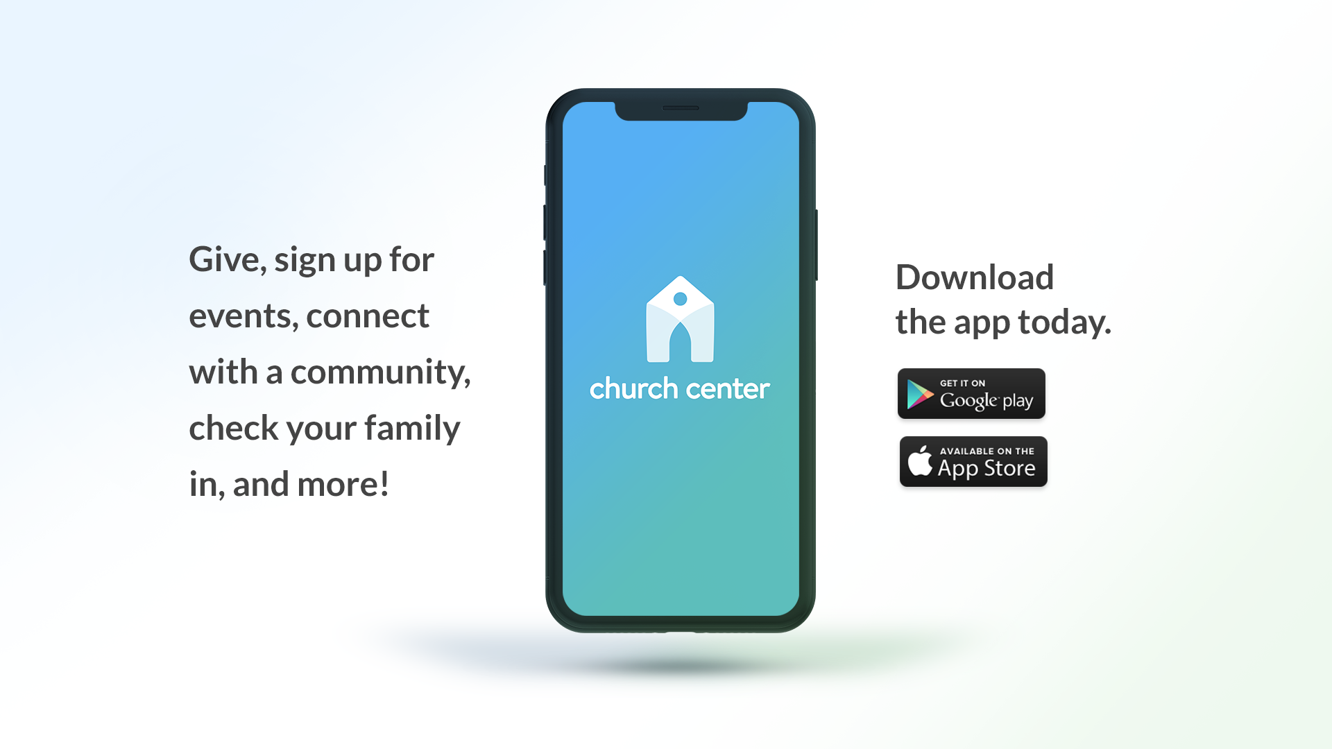 The Church Center app connects congregants with their churches throughout the week. Access our monthly calendar, giving, family check-in, and more! If you have any questions about Church Center, contact the Church Office.